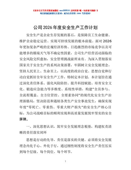 / 公司2026年度安全生产工作计划