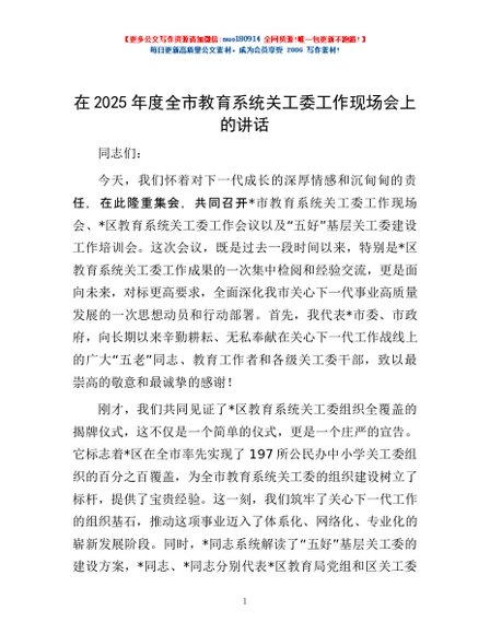 / 在2025年度全市教育系统关工委工作现场会上的讲话