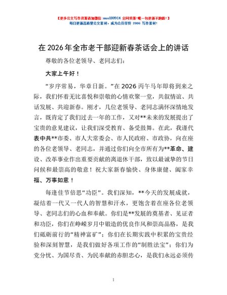 / 在2026年全市老干部迎新春茶话会上的讲话