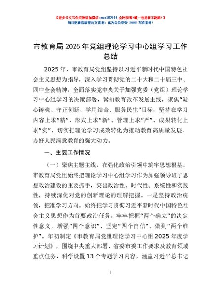 / 市教育局2025年党组理论学习中心组学习工作总结