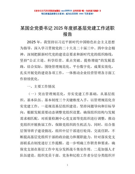 / 某国企党委书记2025年度抓基层党建工作述职报告