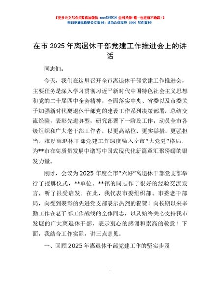 / 在市2025年离退休干部党建工作推进会上的讲话