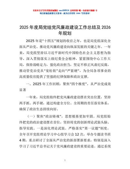 / 2025年度局党组党风廉政建设工作总结及2026年规划