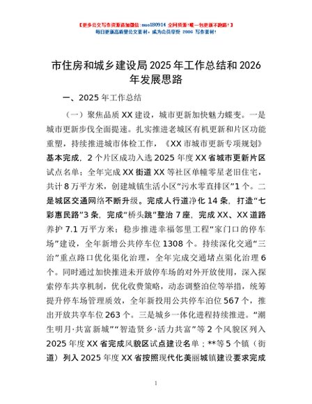 / 市住房和城乡建设局2025年工作总结和2026年发展思路