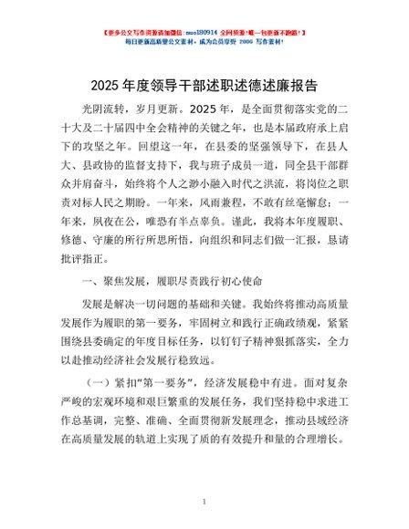 / 2025年度领导干部述职述德述廉报告