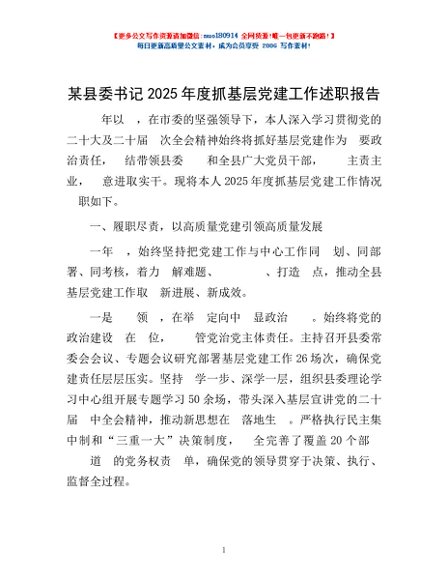 / 某县委书记2025年度抓基层党建工作述职报告