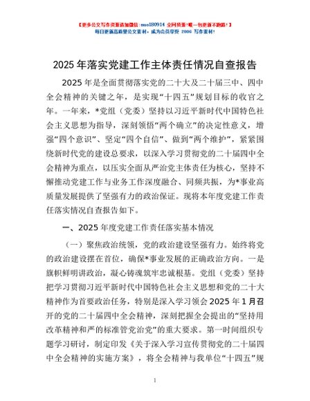 / 2025年落实党建工作主体责任情况自查报告