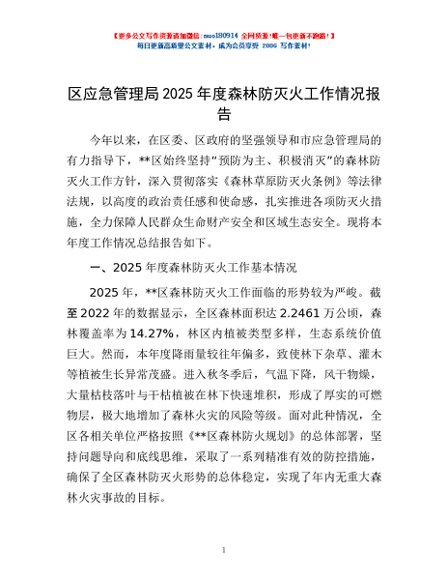 / 区应急管理局2025年度森林防灭火工作情况报告