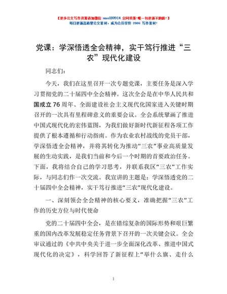 / 党课:学深悟透全会精神,实干笃行推进“三农”现代化建设
