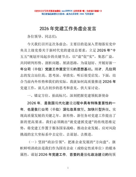 / 2026年党建工作务虚会发言