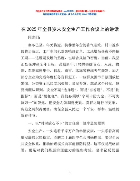 / 在2025年全县岁末安全生产工作会议上的讲话