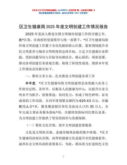 / 区卫生健康局2025年度文明创建工作情况报告
