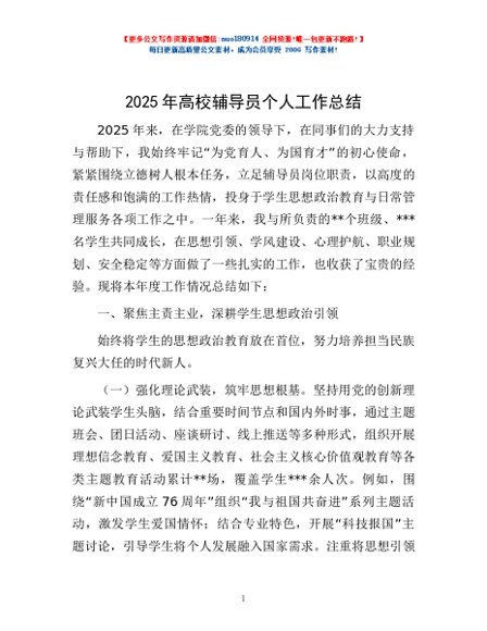 / 2025年高校辅导员个人工作总结