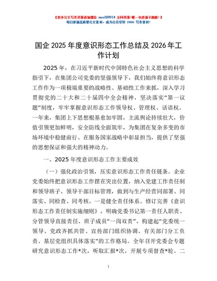 / 国企2025年度意识形态工作总结及2026年工作计划