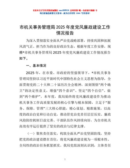 / 市机关事务管理局2025年度党风廉政建设工作情况报告