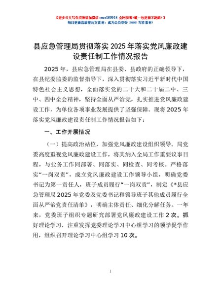 / 县应急管理局贯彻落实2025年落实党风廉政建设责任制工作情况报告