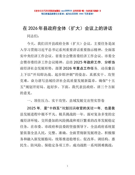 / 在2026年县政府全体(扩大)会议上的讲话