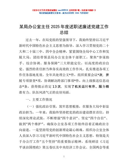 / 某局办公室主任2025年度述职述廉述党建工作总结