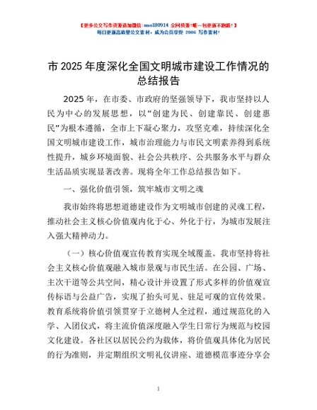 / 市2025年度深化全国文明城市建设工作情况的总结报告