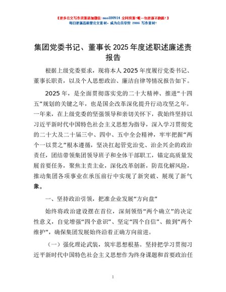 / 集团党委书记、董事长2025年度述职述廉述责报告