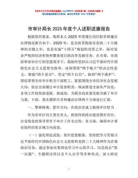 / 市审计局长2025年度个人述职述廉报告