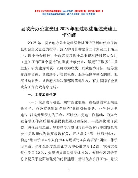 / 县政府办公室党组 2025 年度述职述廉述党建工作总结