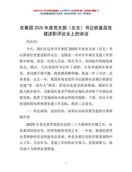/ 在集团2025年度党支部(总支)书记抓基层党建述职评议会上的讲话