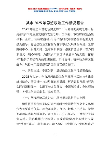 / 某市2025年思想政治工作情况报告