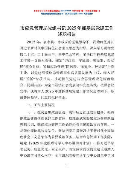 / 市应急管理局党组书记2025年抓基层党建工作述职报告