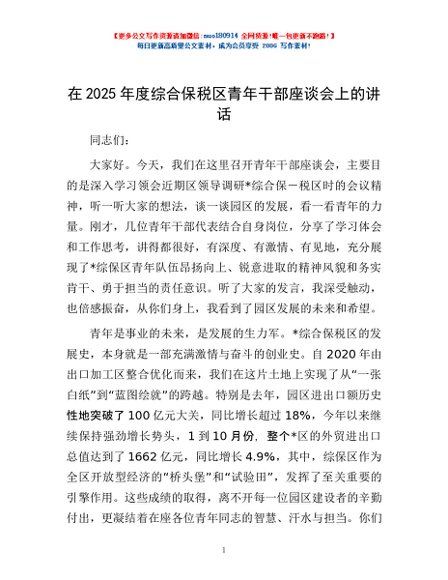 / 在2025年度综合保税区青年干部座谈会上的讲话