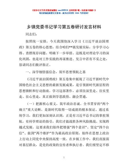 / 乡镇党委书记学习第五卷研讨发言材料