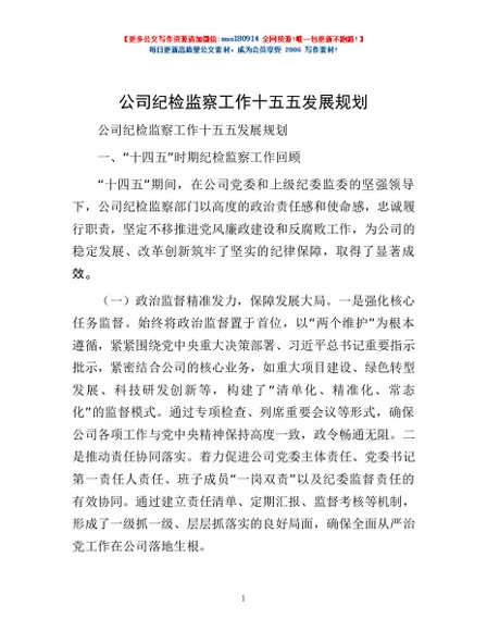 / 公司纪检监察工作十五五发展规划