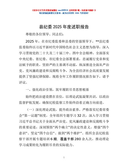 / 县纪委2025年度述职报告