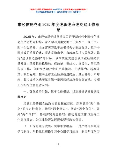 / 市经信局党组2025年度述职述廉述党建工作总结