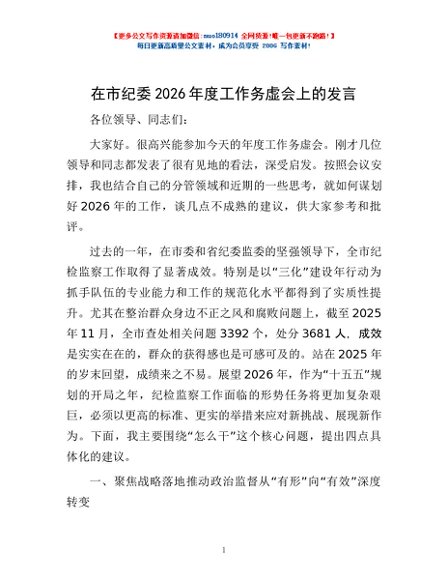 / 在市纪委2026年度工作务虚会上的发言