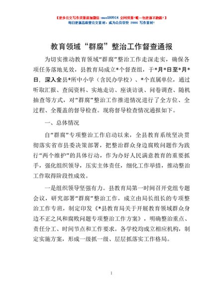 教育领域“群腐”整治工作督查通报