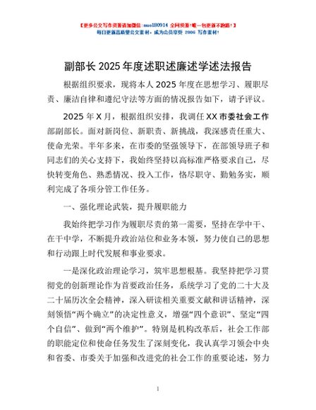/ 副部长2025年度述职述廉述学述法报告