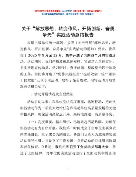 / 关于“解放思想、转变作风、开拓创新、奋勇争先”实践活动总结报告