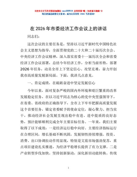/ 在2026年市委经济工作会议上的讲话