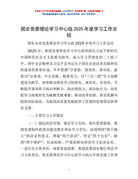 / 国企党委理论学习中心组2025年度学习工作总结