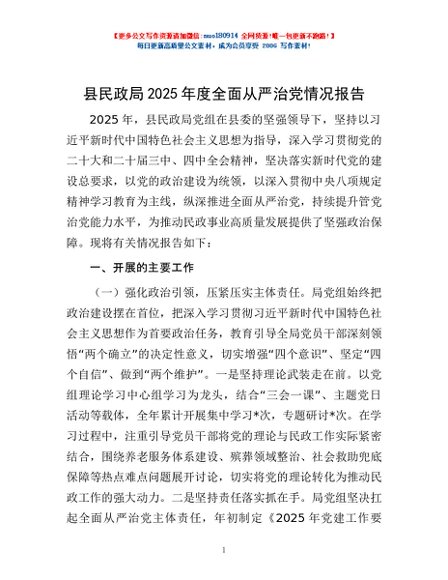 / 县民政局2025年度全面从严治党情况报告