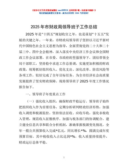 / 2025年市财政局领导班子工作总结