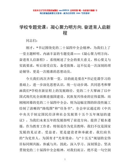 学校专题党课:凝心聚力明方向,奋进育人启新程
