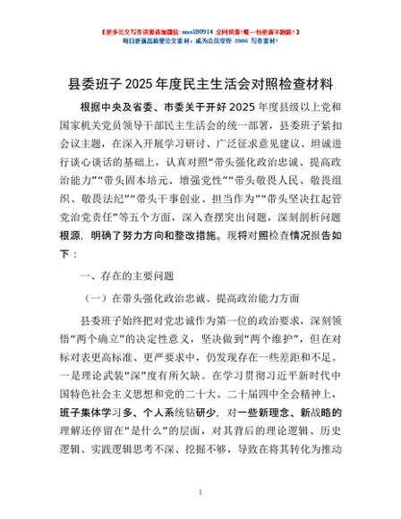 / 县委班子2025年度民主生活会对照检查材料