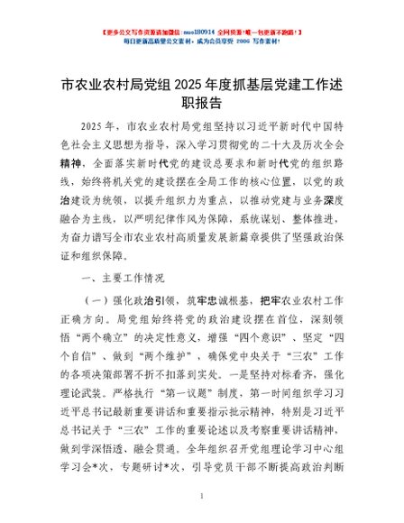 / 市农业农村局党组2025年度抓基层党建工作述职报告