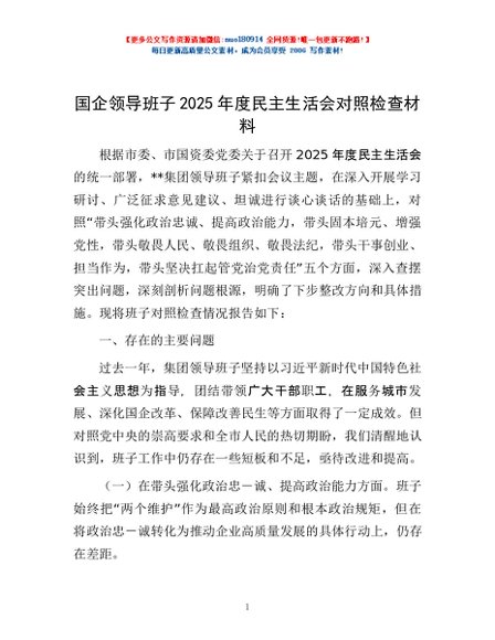 / 国企领导班子2025年度民主生活会对照检查材料