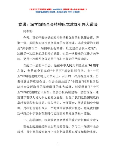 / 党课:深学细悟全会精神 以党建红引领人道暖