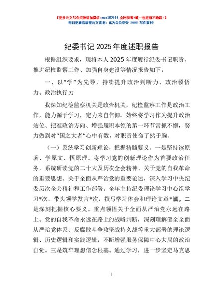 / 纪委书记2025年度述职报告