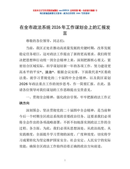 / 在全市政法系统2026年工作谋划会上的汇报发言