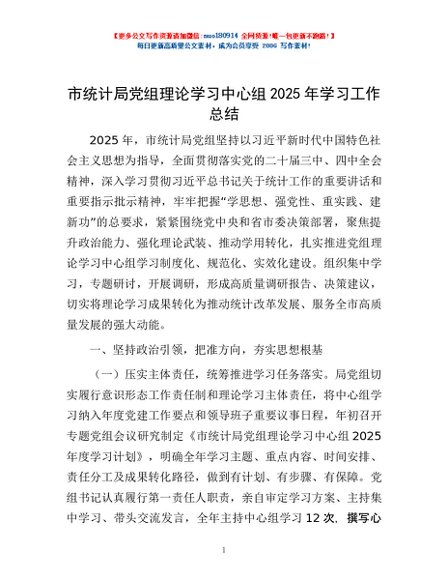 / 市统计局党组理论学习中心组2025年学习工作总结